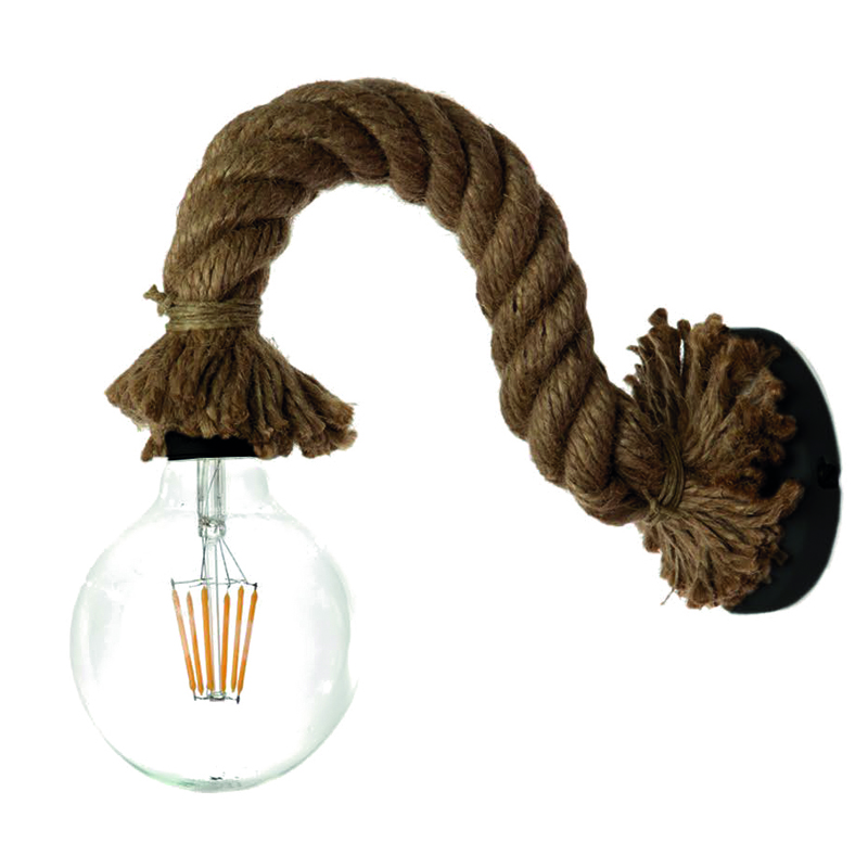 InLight Επιτοίχιο φωτιστικό από καφέ σχοινί και μαύρο μέταλλο 1XE27 D:25cm (43367-BL)