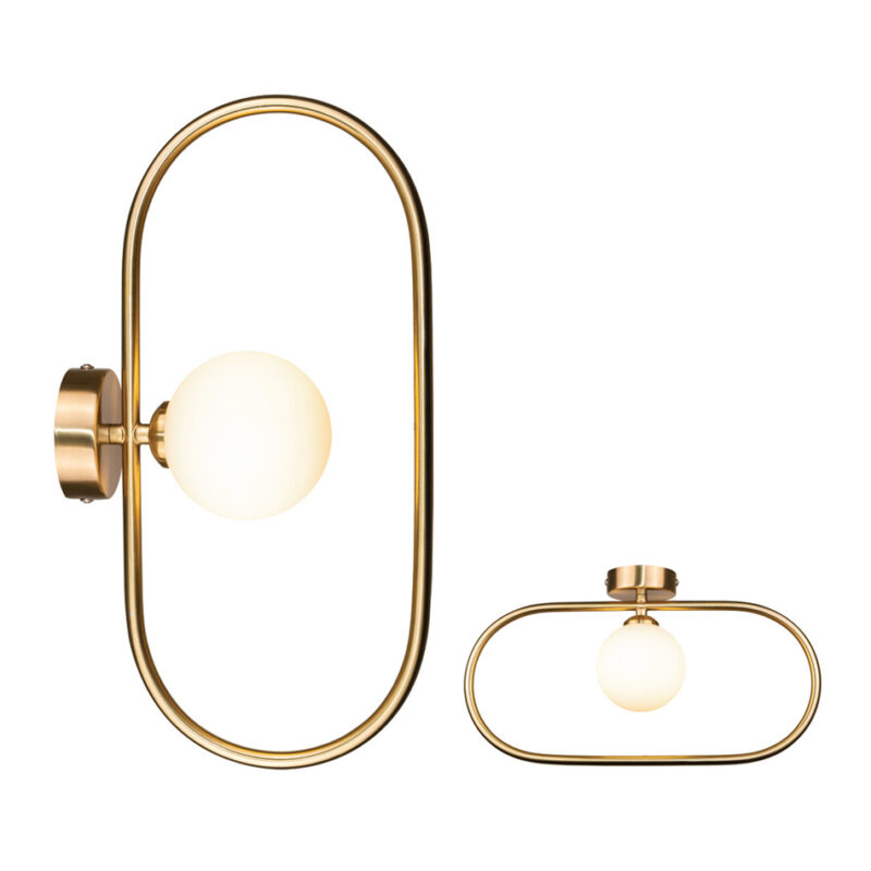 InLight Επιτοίχιο φωτιστικό σε χρυσαφί χρώμα και λευκή οπαλίνα 1XG9 D:40cm (43031-GL)