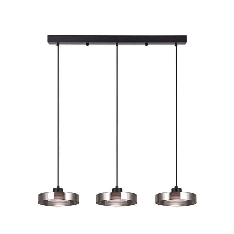 Inlight Κρεμαστό φωτιστικό LED απο μαύρο μέταλλο και φιμέ γυαλί, 70x200cm, 3CCT (Θερμό- Φυσικό- Ψυχρό Φως), Φωτεινότητα 3960LMκαι 3x12W (4075-3R-Black/Smoky)