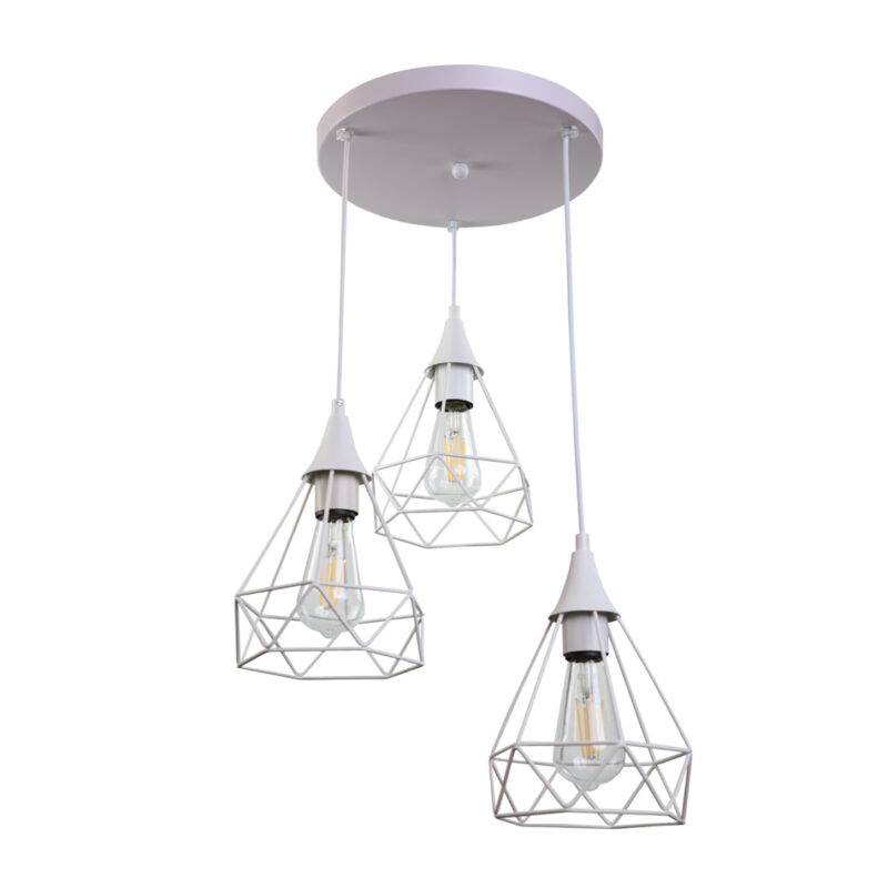 InLight Κρεμαστό φωτιστικό από λευκό μέταλλο 3XE27 D:30cm (4400-3-WH-ΡΟΖΕΤΑ)