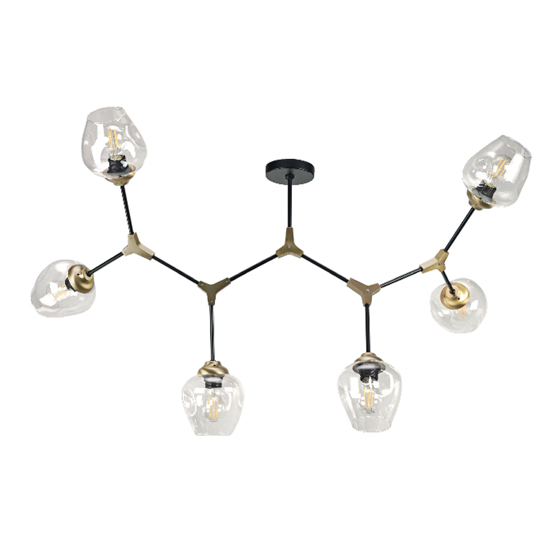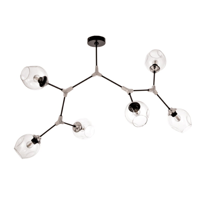 InLight Κρεμαστό φωτιστικό από μαύρο μέταλλο και διάφανο γυαλί 6XE27 D:140cm (6129-6-GL)