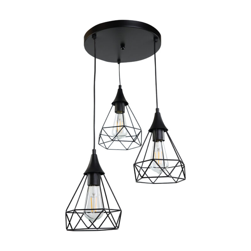 InLight Κρεμαστό φωτιστικό από μαύρο μέταλλο 3XE27 D:30cm (4400-3-BL-ΡΟΖΕΤΑ)