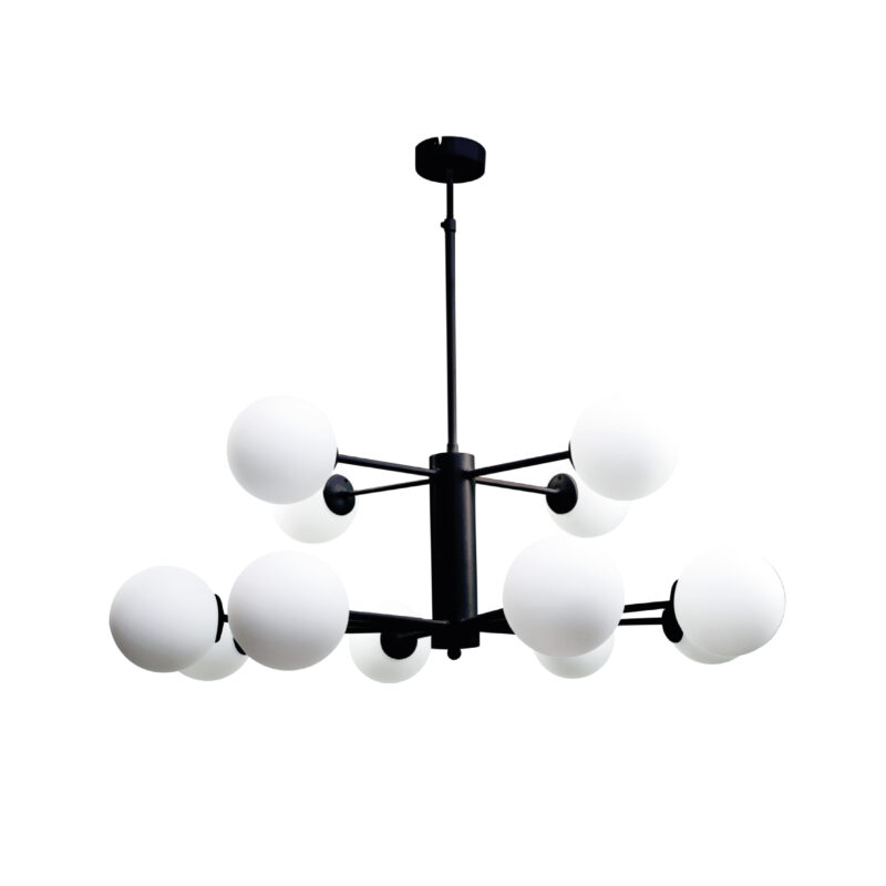 InLight Κρεμαστό φωτιστικό από μαύρο μέταλλο και λευκή οπαλίνα 12XG9 D:100cm (5315-12)
