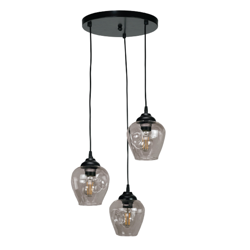 InLight Κρεμαστό φωτιστικό από μαύρο μέταλλο και φιμέ γυαλί 3XE27 D:30cm (4474-3-BL)