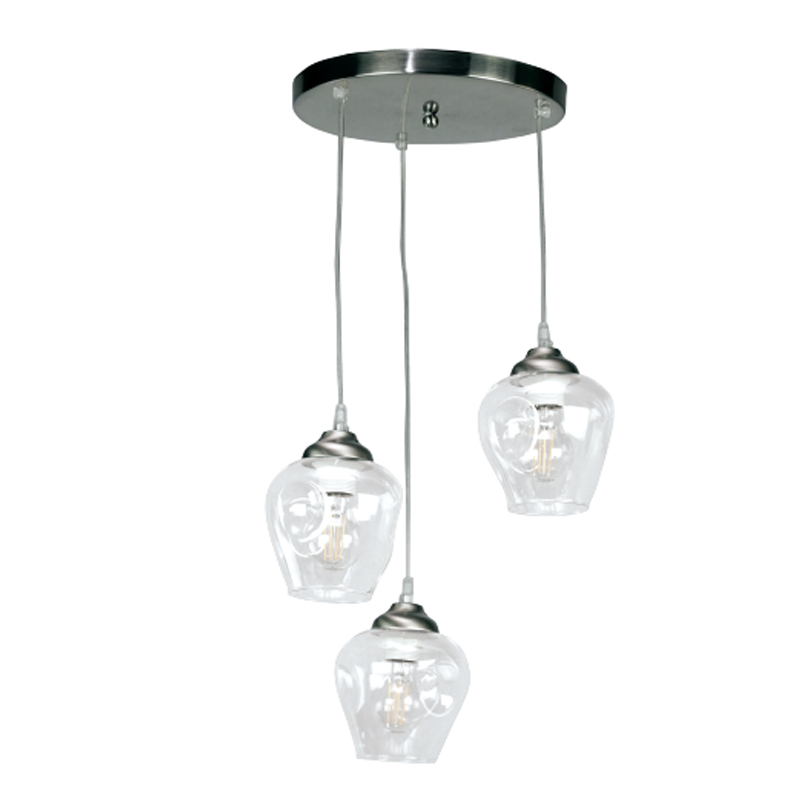 InLight Κρεμαστό φωτιστικό από νίκελ ματ μέταλλο και διάφανο γυαλί 3XE27 D:30cm (4474-3-NM)