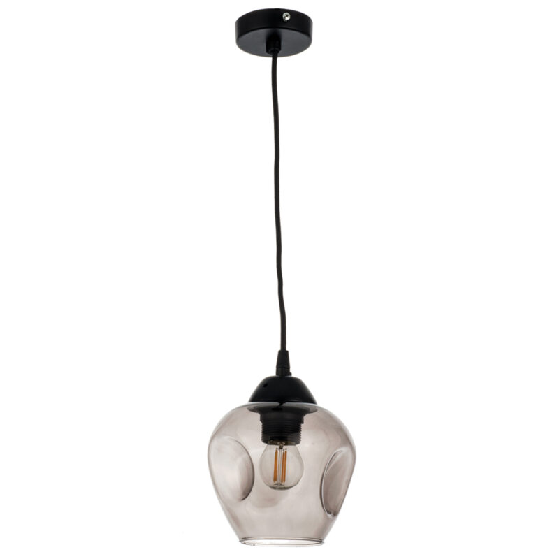 InLight Κρεμαστό φωτιστικό από μαύρο μέταλλο και φιμέ γυαλί 1XE27 D:16cm (4474-BL)