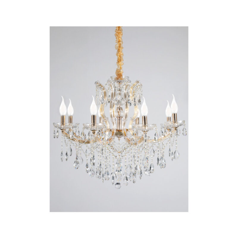 Inlight Κρεμαστό φωτιστικό από χρυσό μέταλλο γυαλί και κρύσταλλα 8XE14 D:80cm (5244-8-Χρυσό)