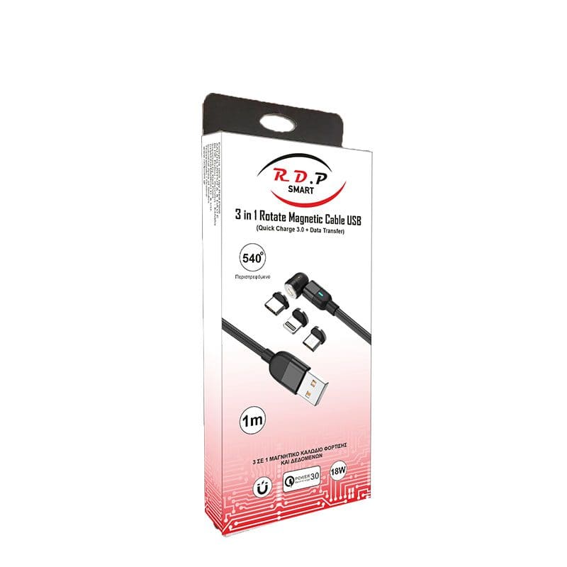 Redpoint ΜΑΓΝΗΤΙΚΟ ΚΑΛΩΔΙΟ USB ΦΩΤΙΖΟΜΕΝΟ 3 ΣΕ 1 (A ΣΕ C, MICRO, LIGHTNING) 1m ΜΠΛΕ