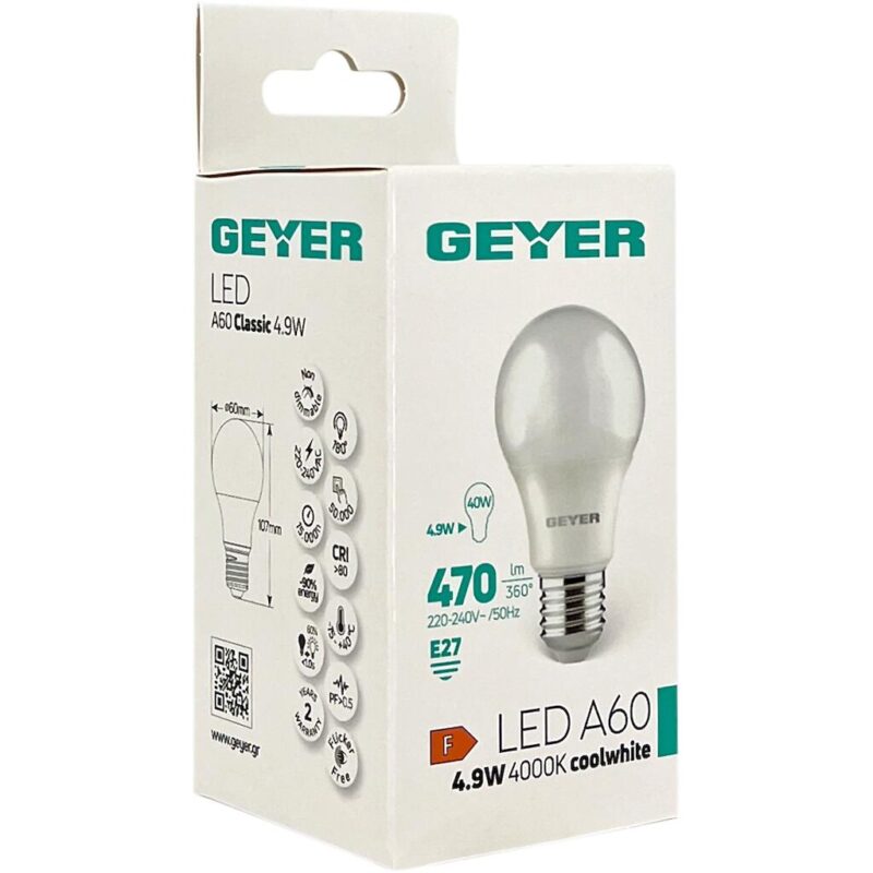 Geyer Λάμπα LED Κλασική A60 4.9W E27 4000K 470lm