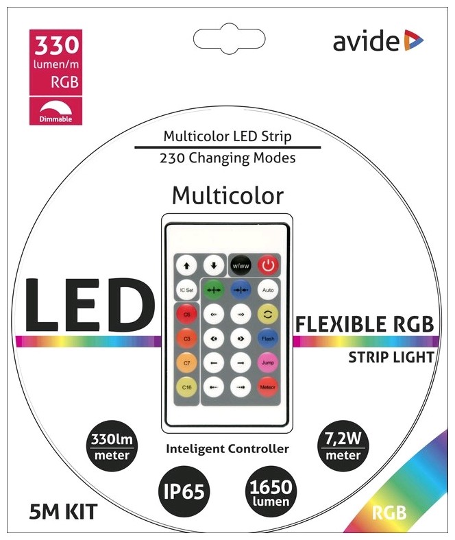 Avide LED Ταινία Blister 12V 7.2W SMD5050 30LED IC RGB IP65 5m + Smart Ελεγκτής