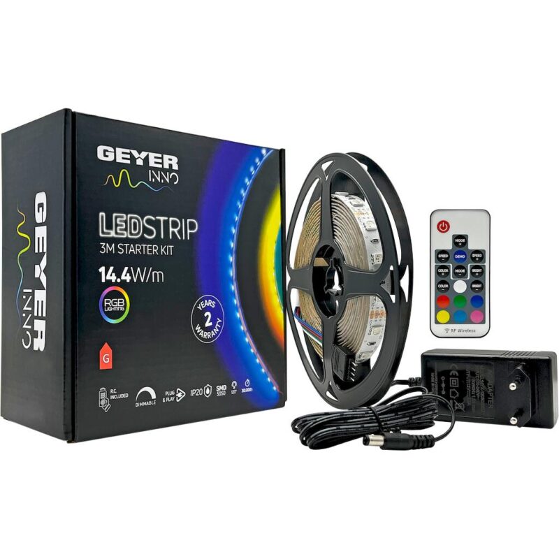 Geyer KIT Ταινίας LED 14,4W 12V WRGBW IP20 2m + Αντάπτορας με διακόπτη + Χειριστήριο SP645E