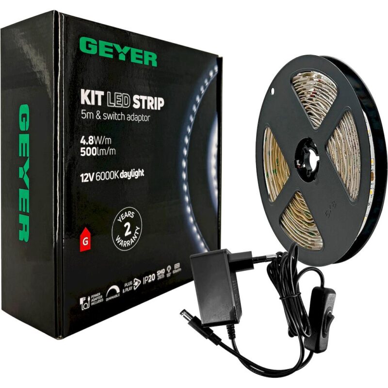 Geyer KIT Ταινίας LED 7W 12V RGB IP20 5m + Αντάπτορας με διακόπτη + Χειριστήριο IR 24Key
