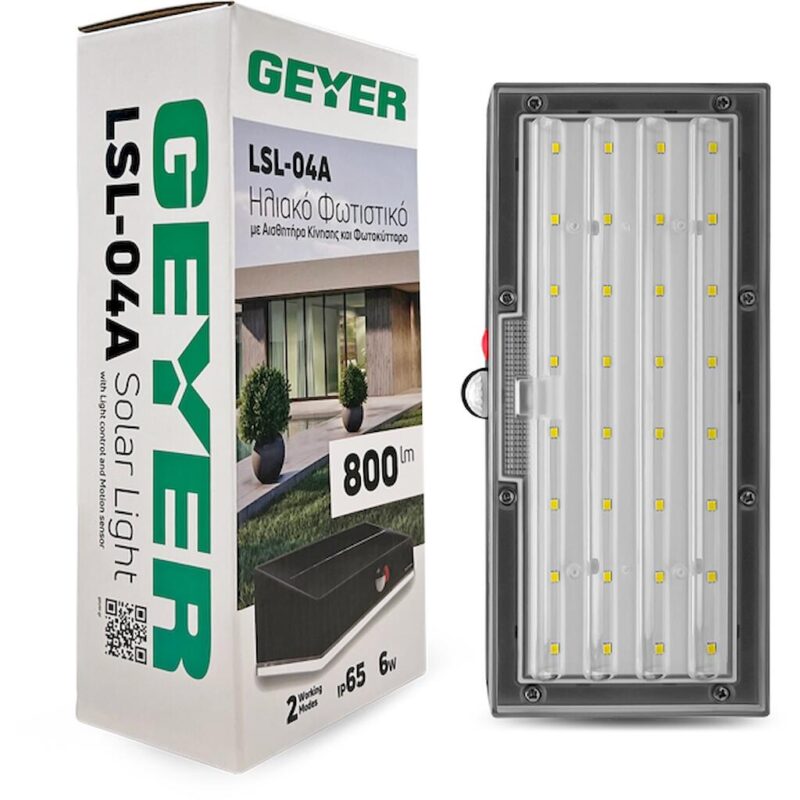 Geyer LED Ηλιακό Φωτιστικό Δρόμου με τηλεχειριστήριο 10W 6500K 1500lm IP65 μαύρος
