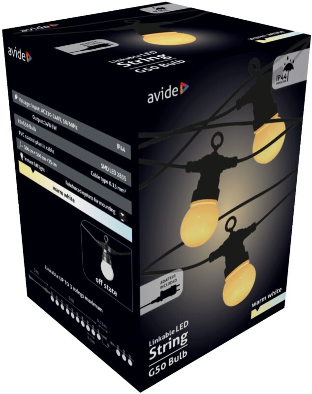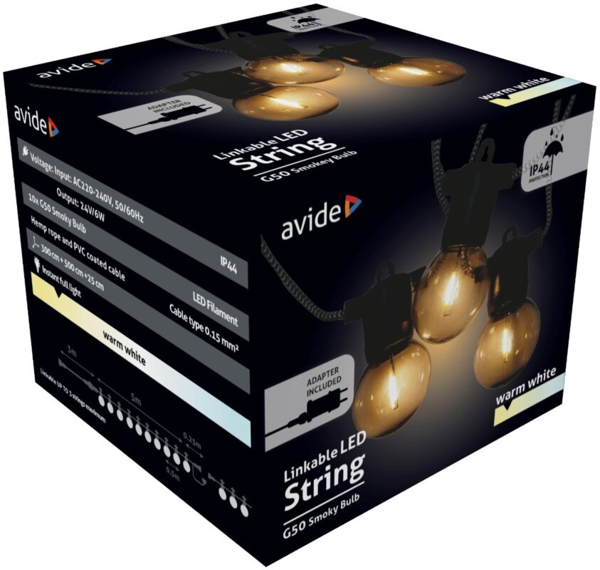Avide Εξωτερική Γιρλάντα 5m Papaya RGB Με Δυνατότητα Επέκτασης- Με Τηλ/στήριο