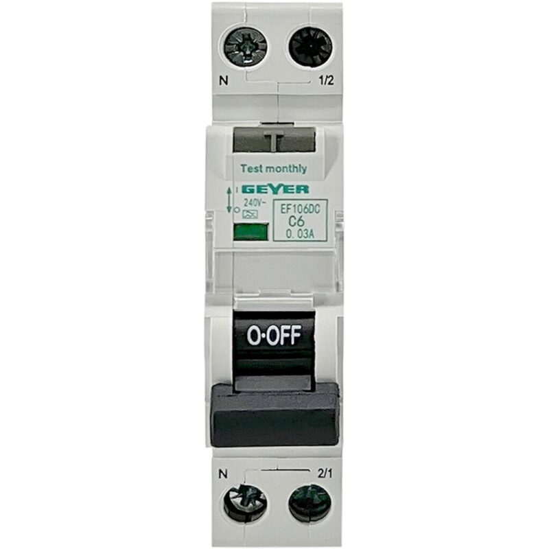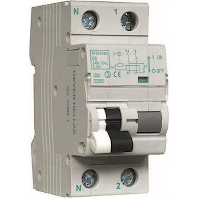 Geyer Ρελέ διαρροής 1P 30mA Τύπος A με αυτόματη ασφάλεια C 6A 6kA
