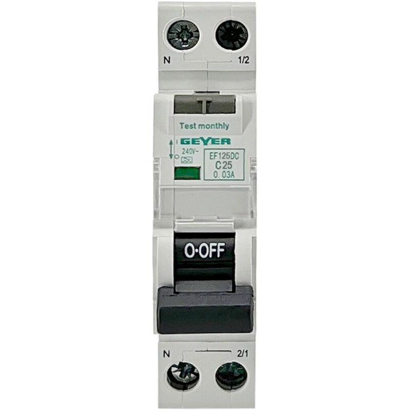Geyer Ρελέ διαρροής 1P 30mA Τύπος A με αυτόματη ασφάλεια C 25A 6kA