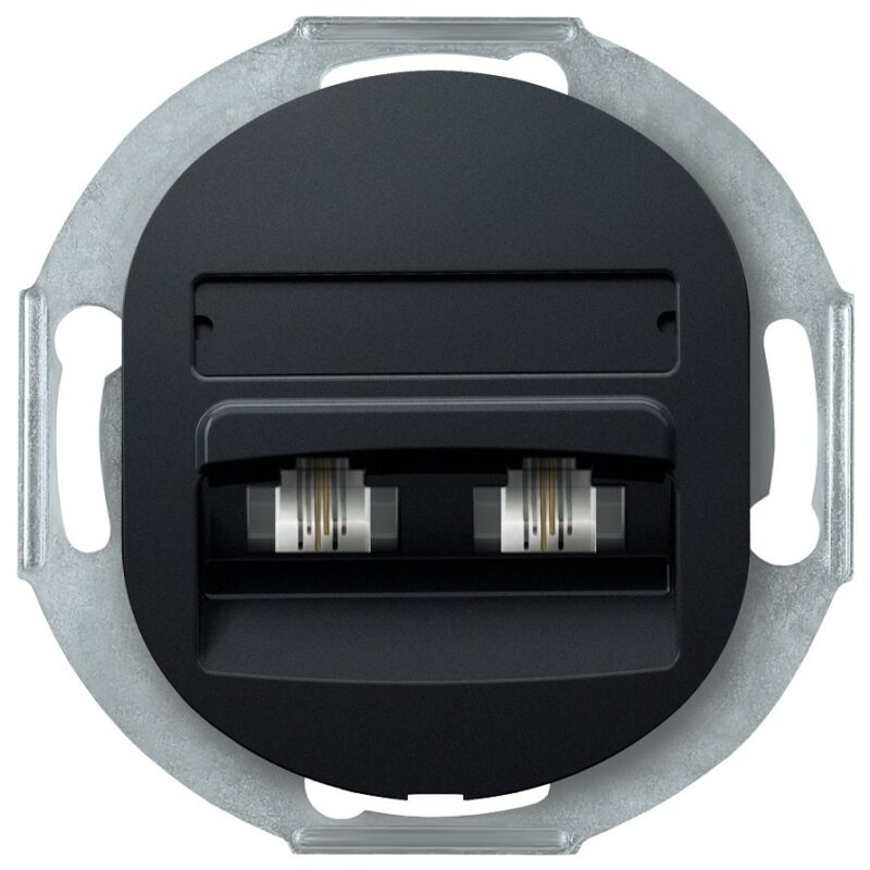 EON E613.E1 Double telephone socket without cover frame 2xRJ12 6/4 Cat 3, soft-touch black