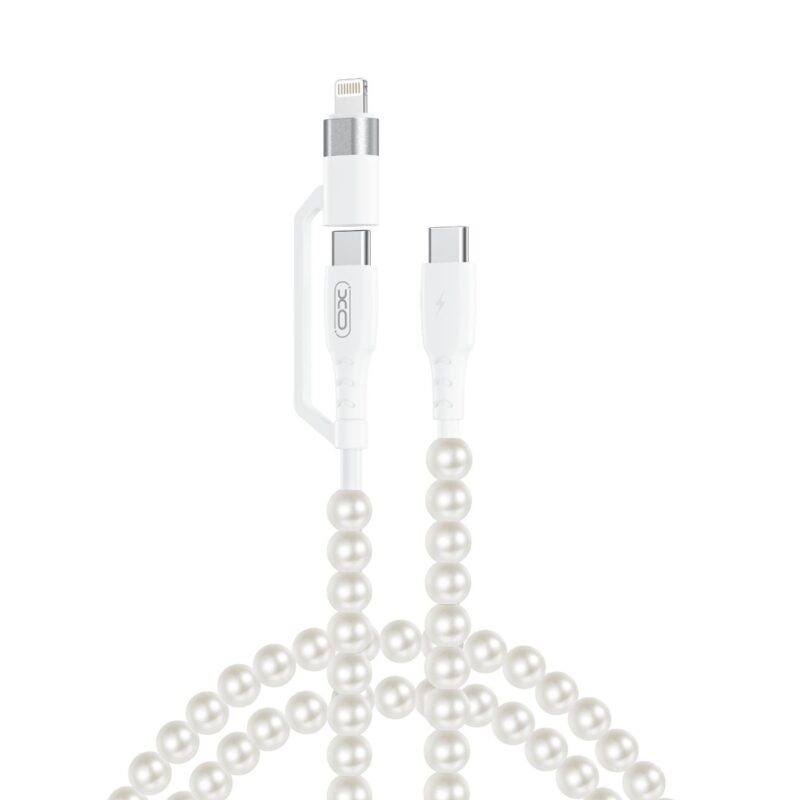 XO NB-Q310 Καλώδιο Φόρτισης & Μεταφοράς Δεδομένων με Πέρλες Type-C σε Type-C (60W) & Lighting (27W) 1m