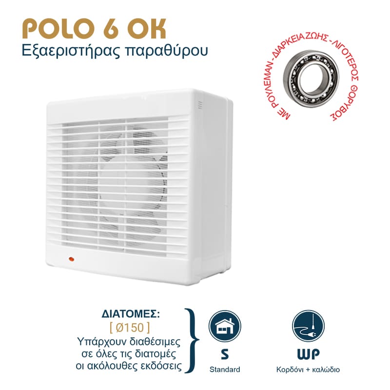 Redpoint 007-0313 POLO 6 OK ΕΞΑΕΡΙΣΤΗΡΑΣ ΠΑΡΑΘΥΡΟΥ ΜΕ ΡΟΥΛΕΜΑΝ Φ150 25W ΛΕΥΚΟΣ DOSPEL