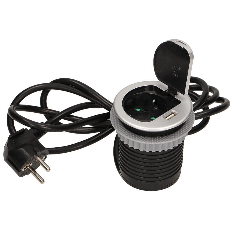 Redpoint 1337/G ΑΣΗΜΙ ΠΟΛΥΠΡΙΖΟ ΓΡΑΦΕΙΟΥ ΧΩΝΕΥΤΟ ΜΕ ΚΑΠΑΚΙ 3 ΣΟΥΚΟ + ΚΑΛΩΔΙΟ 1,5m ΜΕ ΦΙΣ ORNO