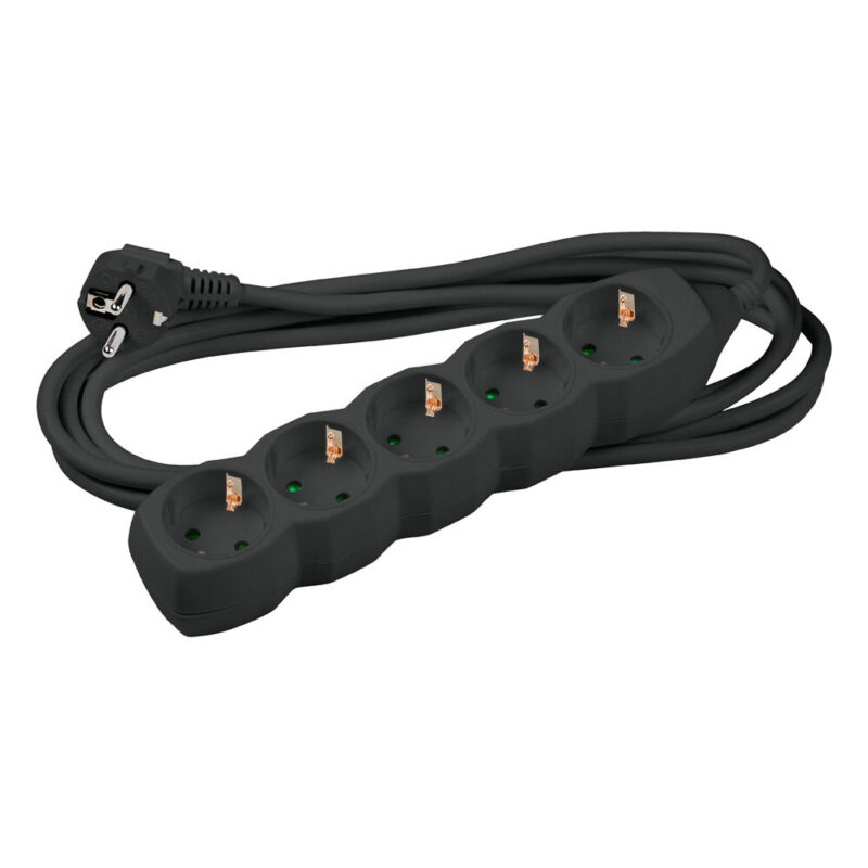 Technik Πολύπριζο 5 Θέσεων με Διακόπτη & 1.5 mm² Καλώδιο Χαλκού 16A Μαύρο 5m