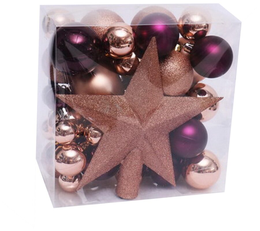Artezan Χριστουγεννιάτικες Μπάλες 3-8cm Full Set Χρυσό και Μώβ Mix + Αστέρι Κορυφής Δέντρου 52τμχ/κουτί