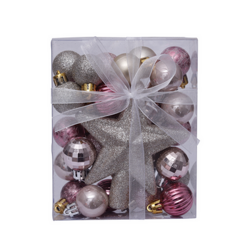 Artezan Χριστουγεννιάτικες Μπάλες 3cm Full Set Ασημί Ροζ + Αστέρι Κορυφή Δέντρου 30τμχ/κουτί