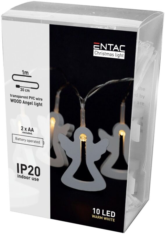 Entac Χριστουγεννιάτικα Εσωτερικά Ξύλινα Αγγελλάκια 10 LED Θερμό 1μ (2xAA Δεν περιλαμβ.)