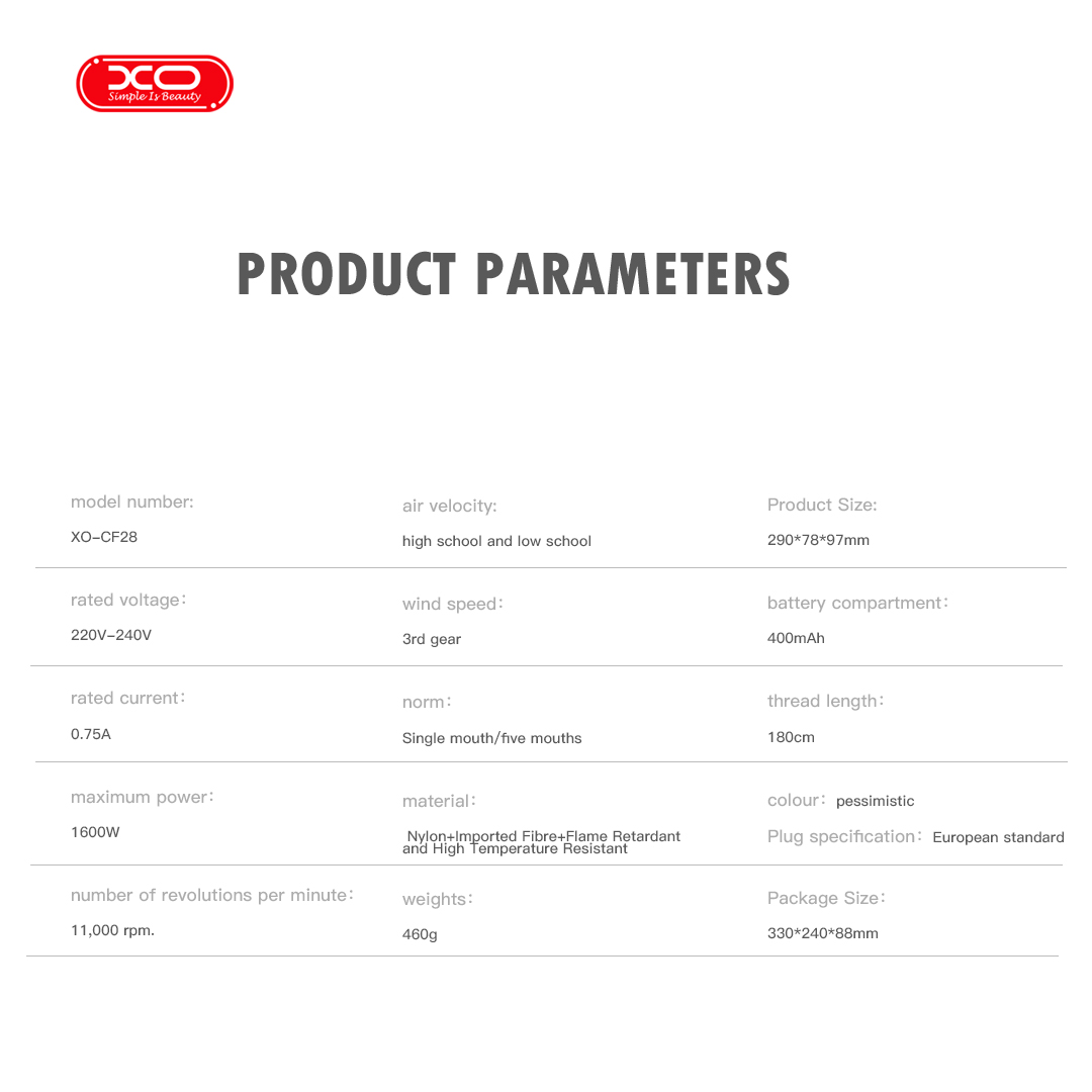 ΧΟ CF28 Smart Πιστολάκι Μαλλιών (EU) 1600W