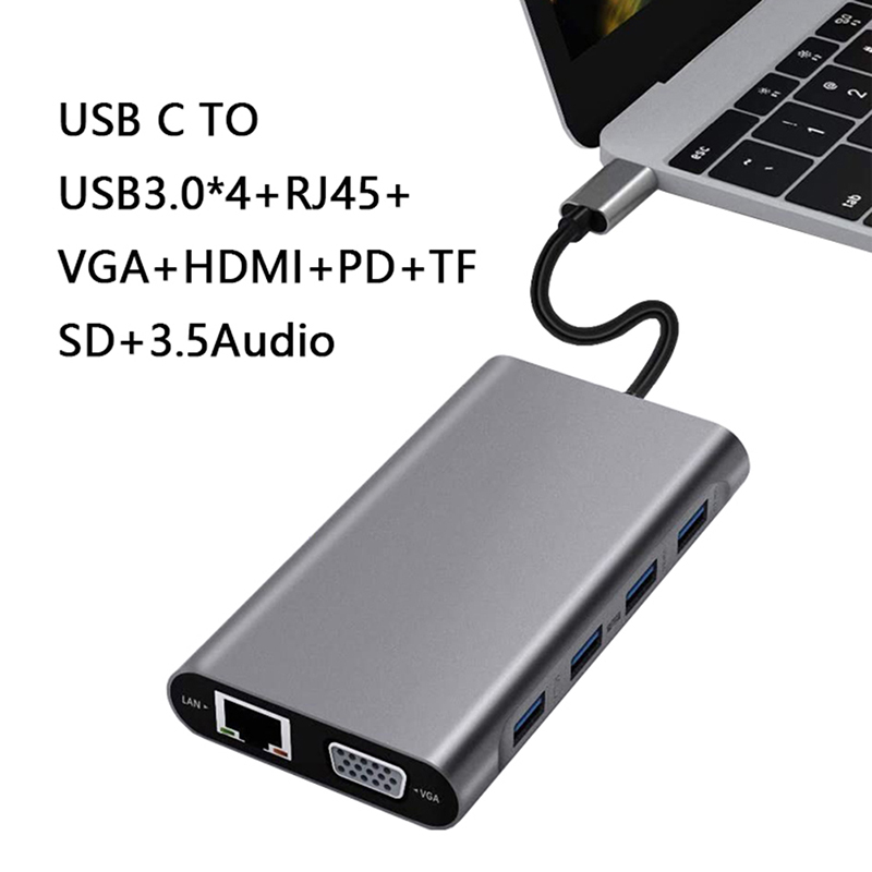 Μετατροπέας 11in1 RJ45 USBx4 VGA HDMIPD SD TF Audio