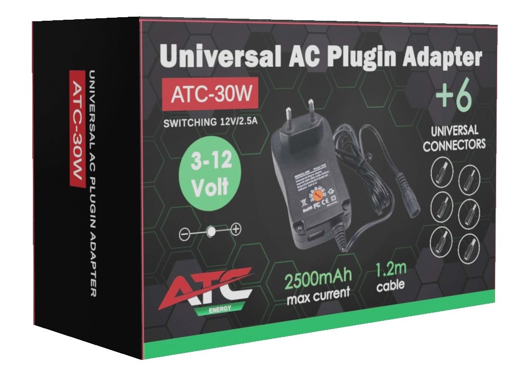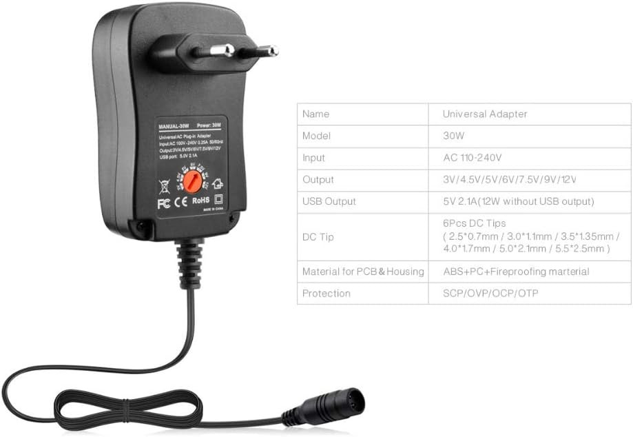 Έξοδος: DC 3V/4,5V/5V/6V/7,5V/9V/12V, Μέγιστο: 2,5A