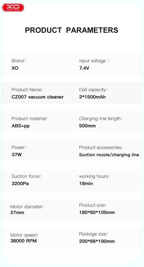 ΧΟ CZ007 Ασύρματη Ηλεκτρική Σκούπα για το Αυτοκίνητο και το Σπίτι Άσπρο