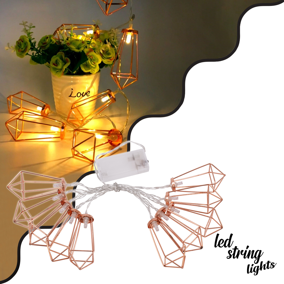 79803 Διακοσμητική Γιρλάντα Bronze Cone 1.5 Μέτρα με Διακόπτη On/Off – 10 LED 1W με Μπαταρίες 2xAA & Διάφανο Καλώδιο IP20 Θερμό Λευκό 2700K Μ1.5m