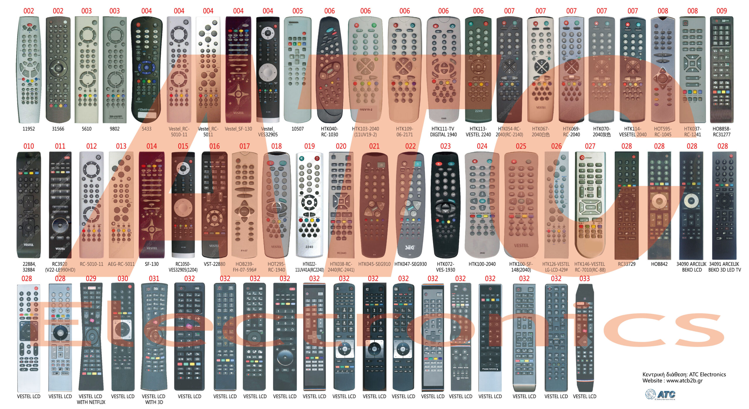 Το τηλεχειριστήριο αυτό σας δίνει την δυνατότητα να το χρησιμοποιήσεται απευθείας σε πολλά μοντέλα τύπου VESTEL.