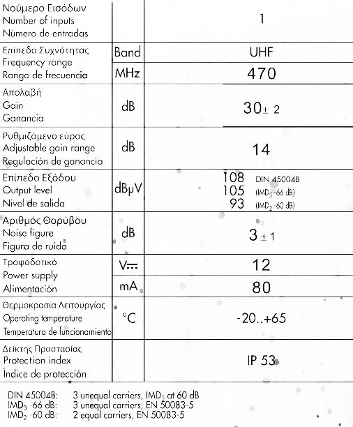 - Επίπεδο εξόδου: 108 DIN 45004B), 105 (IMD3-66 dB), 93 (IMD2-60 dB)