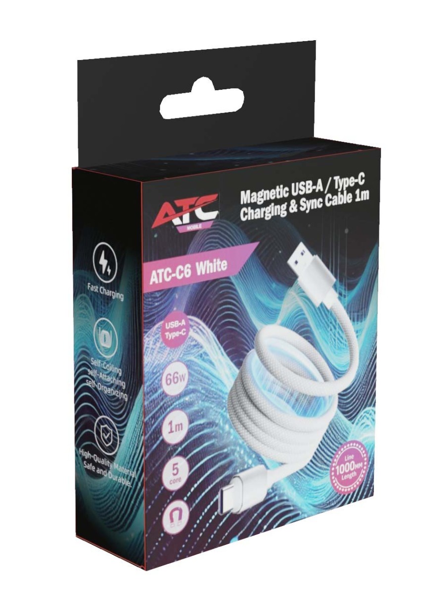 ATC-C6 Μαγνητικό Καλώδιο Φόρτισης και Μεταφοράς Δεδομένων USB-A σε Type-C 66W 1m Λευκό