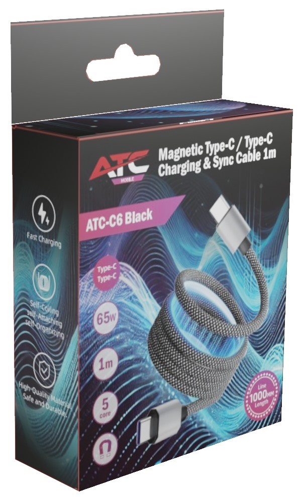 ATC-C6 Μαγνητικό Καλώδιο Φόρτισης & Μεαφοράς Δεδομένων Type-C σε Type-C 65W 1m Μαύρο