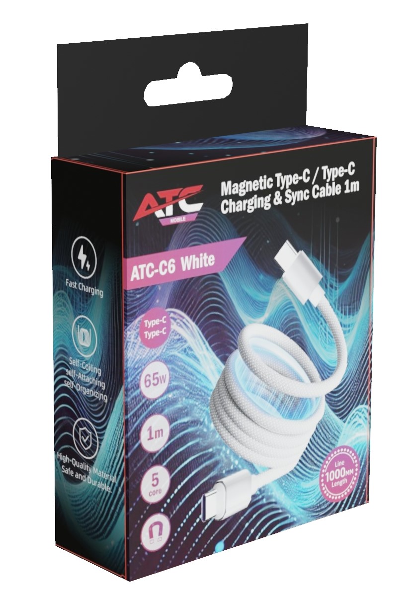 ATC-C6 Μαγνητικό Καλώδιο Φόρτισης & Μεταφοράς Δεδομένων Type-C σε Type-C 65W 1m Λευκό