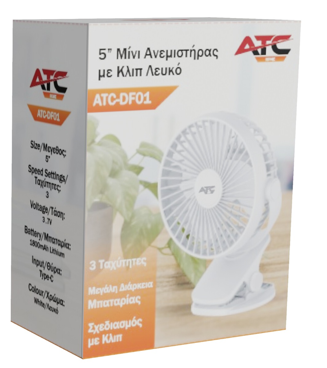 ATC DF-01 Μίνι Επαναφορτιζόμενος Ανεμιστήρας Γραφείου 5″ με Κλιπ Λευκό