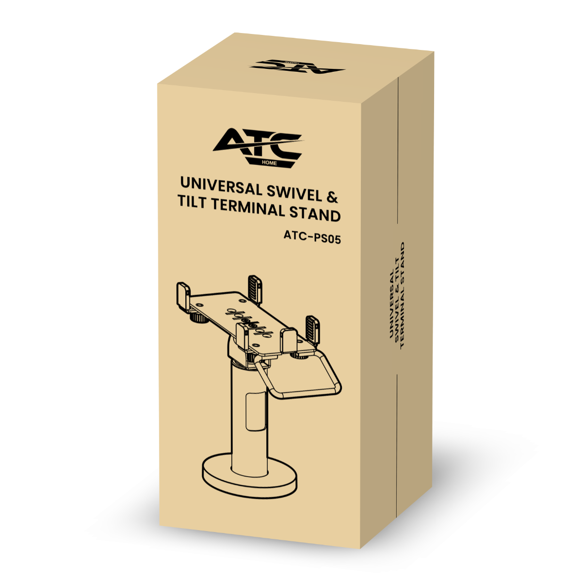 Η ATC-PS05 είναι η ιδανική βάση για ασφαλή τοποθέτηση τερματικού πιστωτικών καρτών πάνω σε πάγκο, με σταθερή βάση βιδωμένη στο σημείο. Οι ρυθμιζόμενοι σε πλάτος σφιγκτήρες επιτρέπουν προσαρμογή σε συσκευές 2.8″ ~ 4.3″, ενώ το πάνελ μπορεί να μετακινηθεί εμπρός ή πίσω για ευέλικτη τοποθέτηση. Η βάση περιστρέφεται 360° και έχει δυνατότητα κλίσης προς τα πάνω ή κάτω για εύκολη προσβασιμότητα. Η ενσωματωμένη διαχείριση καλωδίων κρατά τον χώρο καθαρό και οργανωμένο.