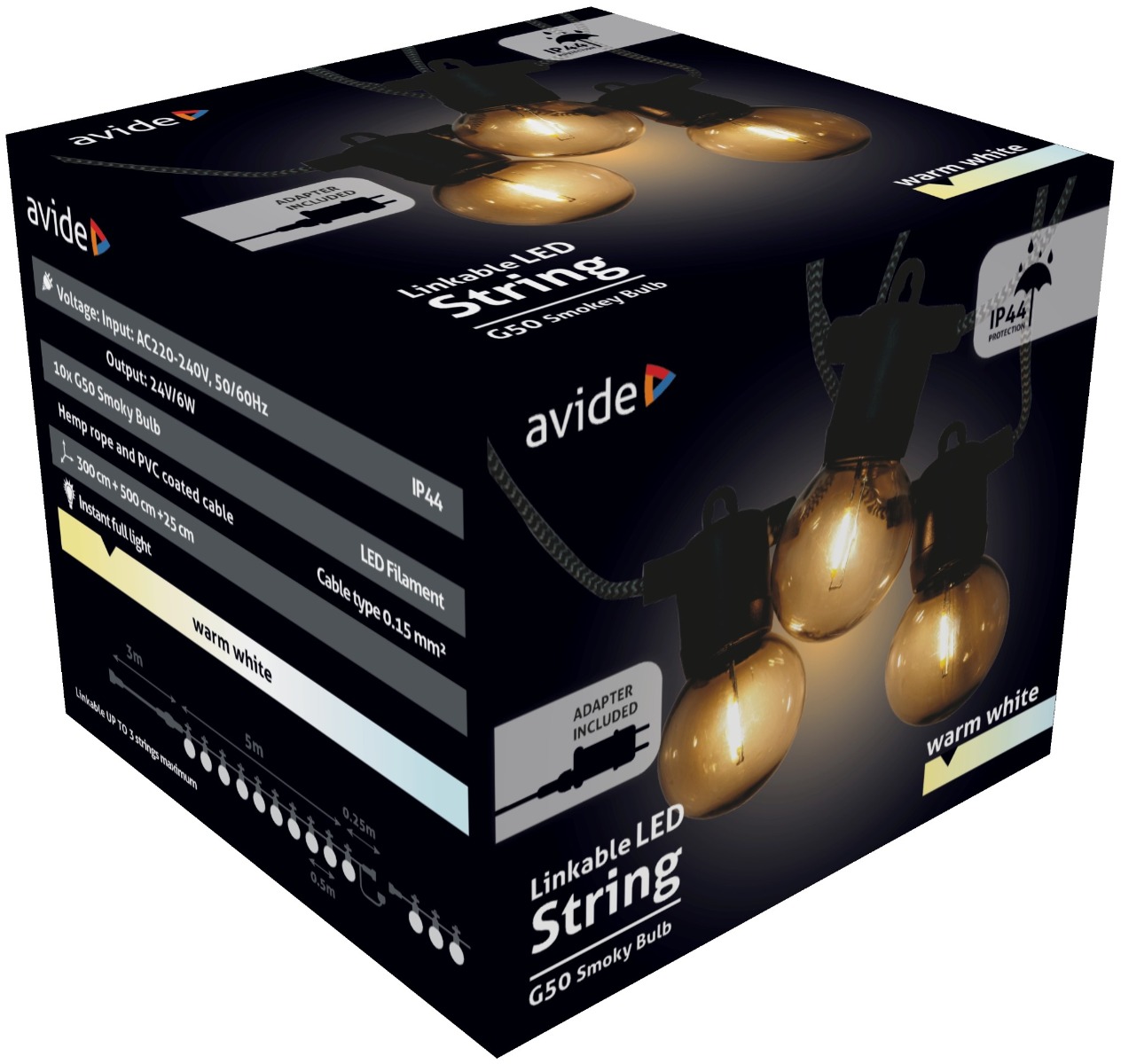 Avide Εξωτερική Γιρλάντα 5m Θερμό Καφέ Σχοινί με Δυνατότητα Επέκτασης