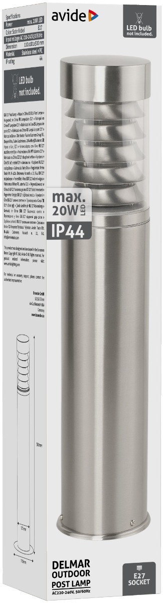 Avide Εξωτερικό Φωτιστικό Κήπου Delmar 1xE27 500mm IP44 Σατέν Νίκελ