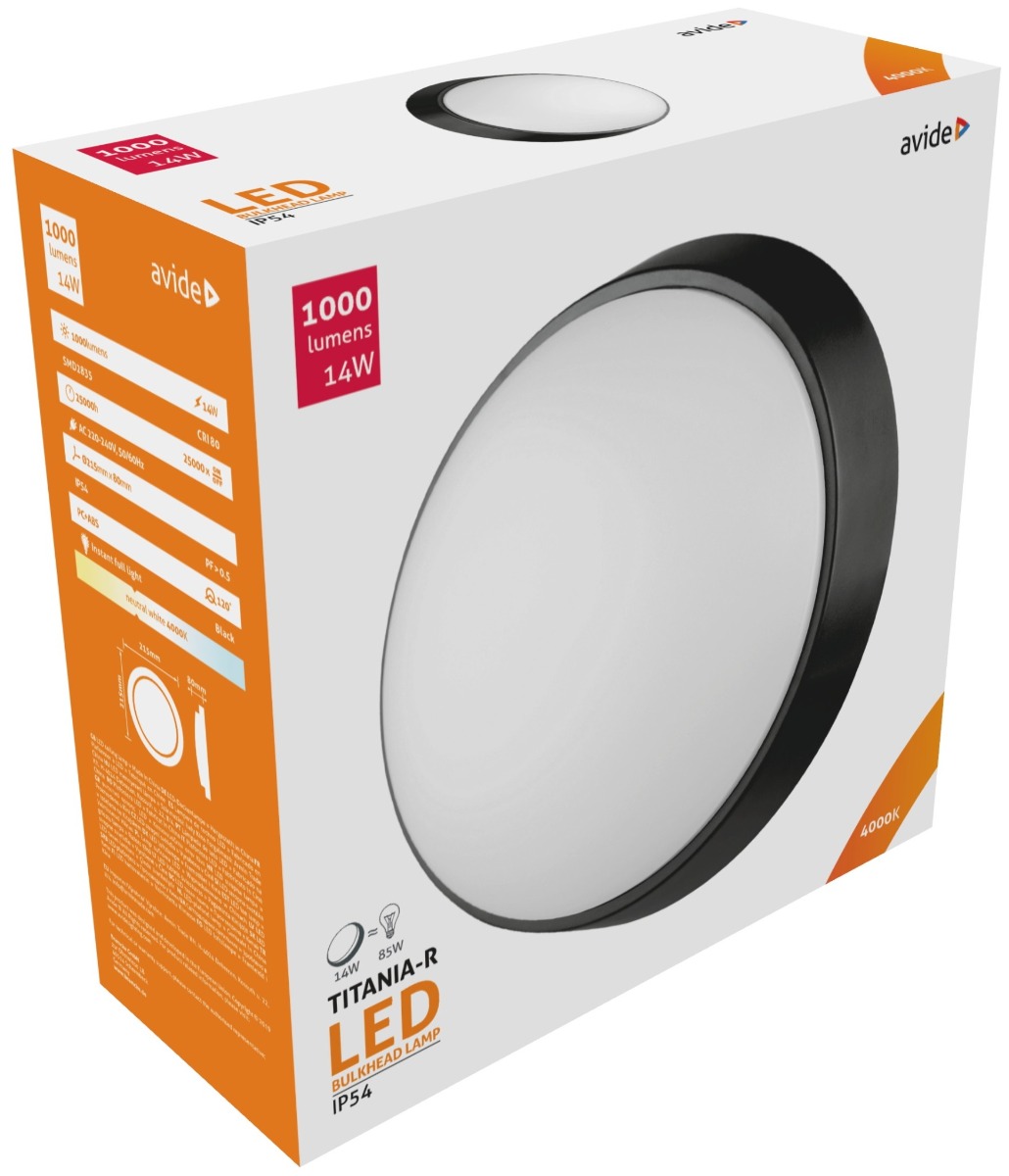 Avide Στεγανή Πλαφονιέρα Οροφής Στρογγυλό (Titania-R) IP54 14W Λευκό 4000K Μαύρο