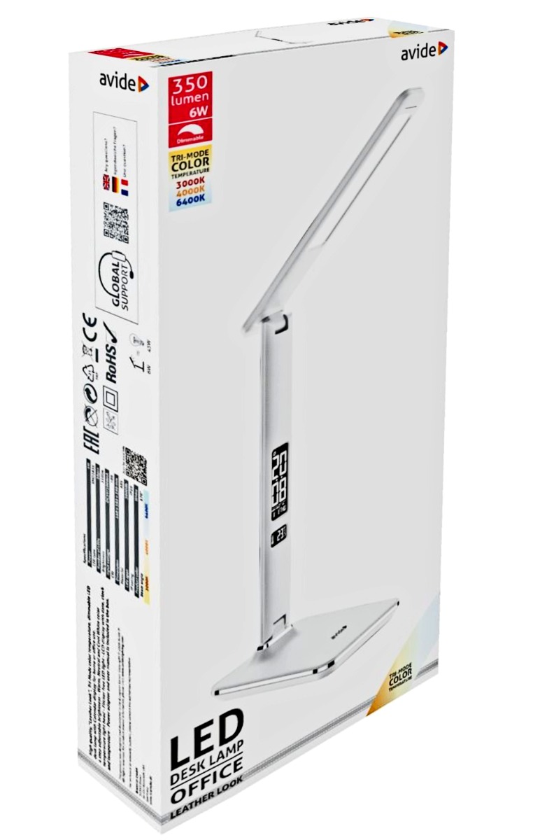Avide Φωτιστικό Γραφείου LED δερμάτινο με ημερολόγιο 6W Λευκό