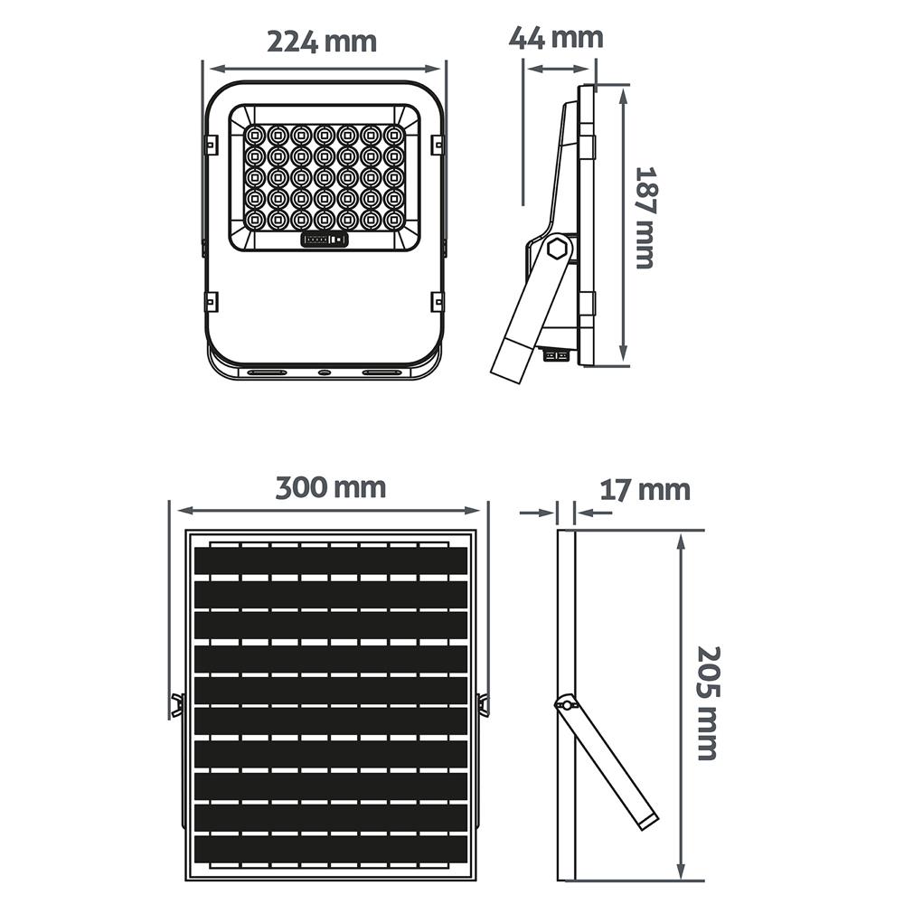 Διαστάσεις προϊόντος: Μέγεθος λάμπας: 224x44x187mm / Μέγεθος ηλιακού πάνελ: 300x17x205mm