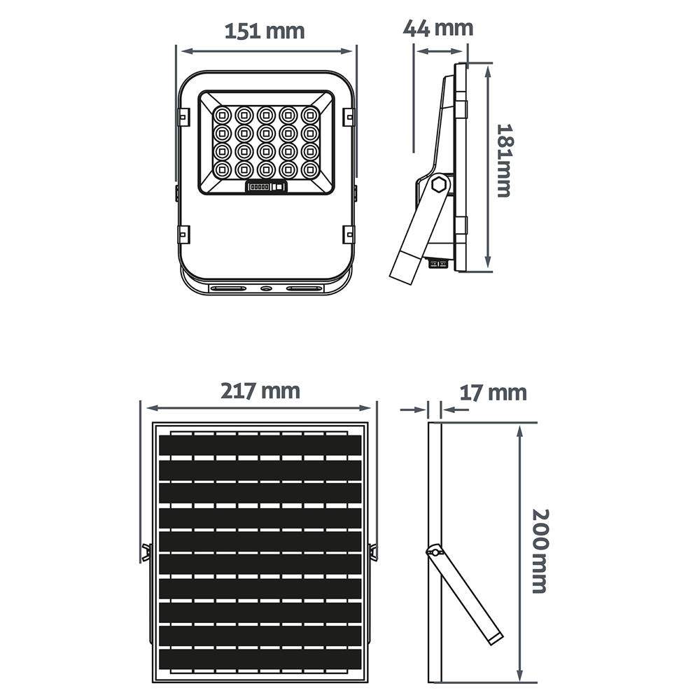Διαστάσεις προϊόντος: Μέγεθος λάμπας: 181x44x151mm / Μέγεθος ηλιακού πάνελ: 210x17x200mm