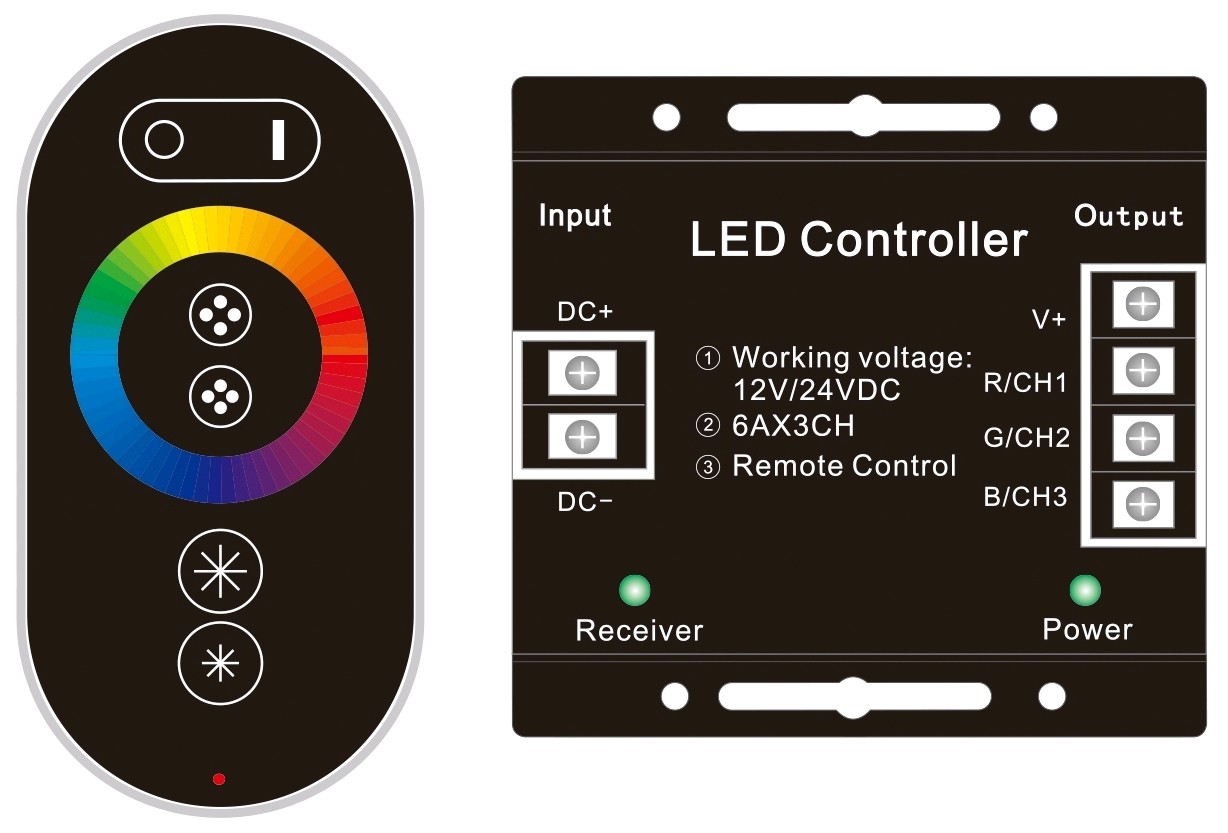 Avide LED Ταινία 12V 216W RGB 6 Πλήκτρα RF Τηλεχειριστήριο Αφής και Ελεγκτής