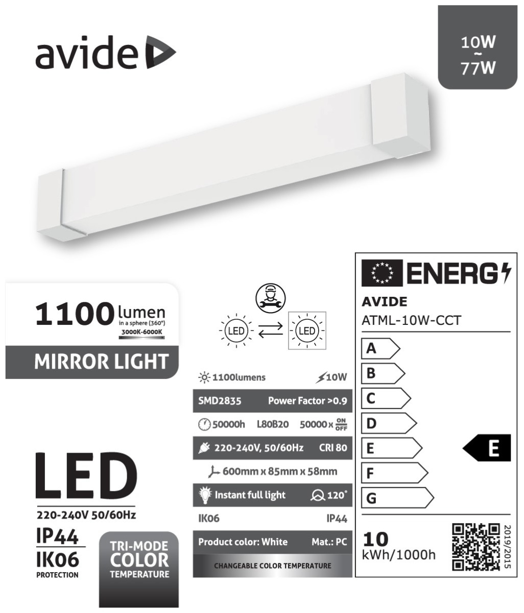 Avide LED Φωτιστικό Καθρέφτη 600mm 10W 1100lm