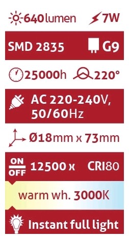 • Θερμοκρασία Φωτισμού : 3 000 K