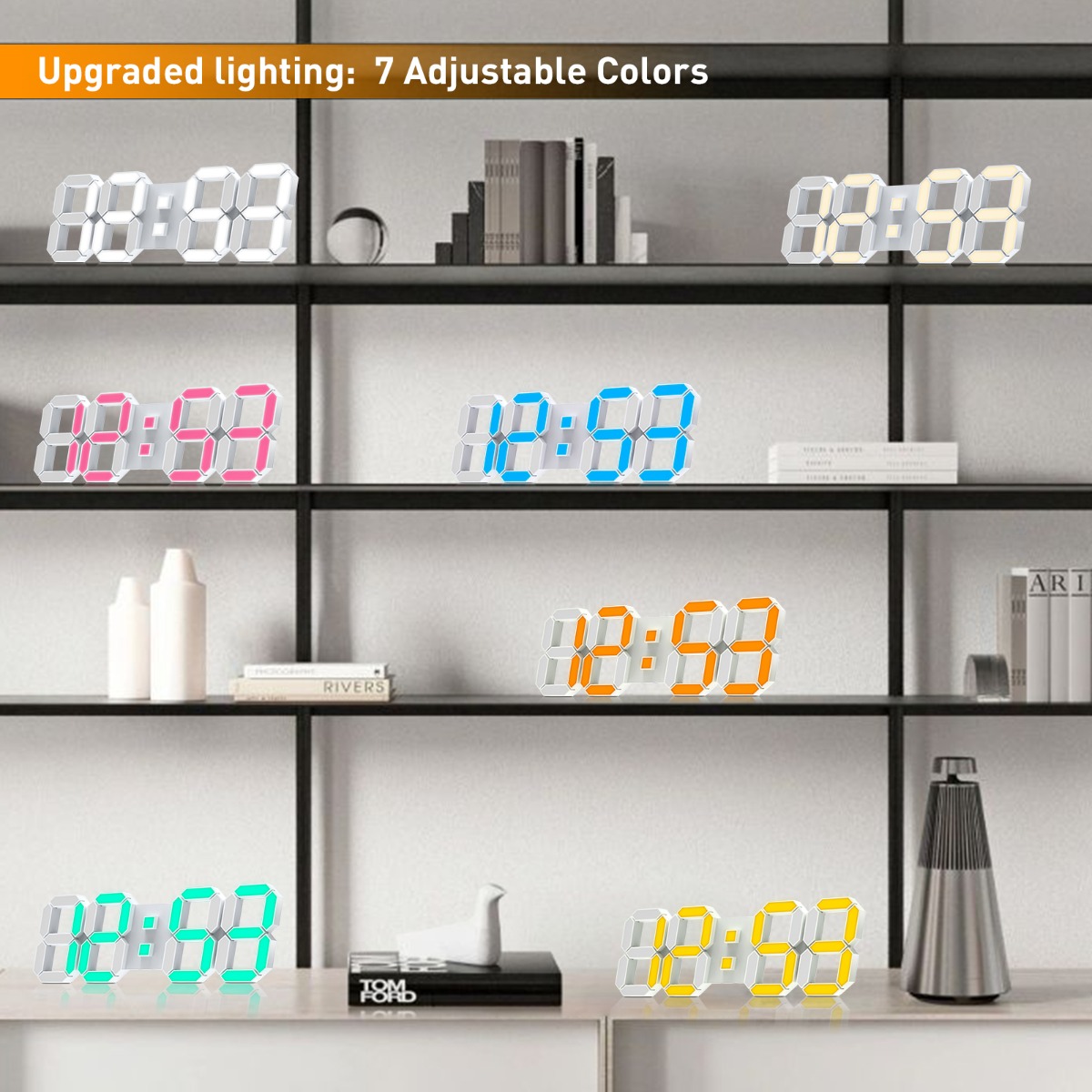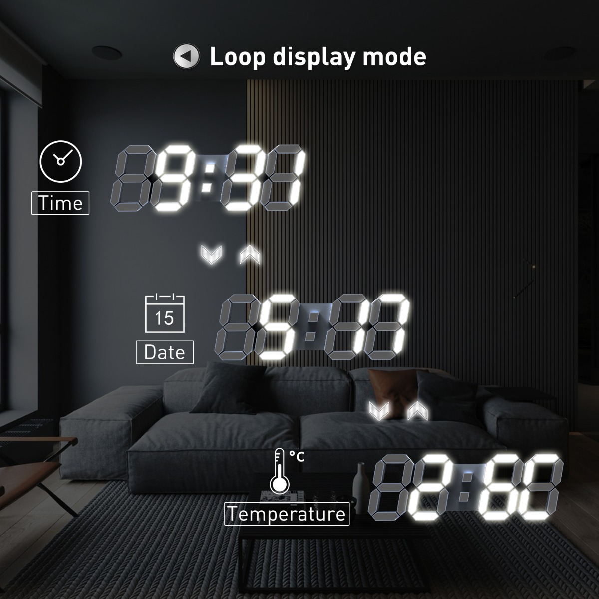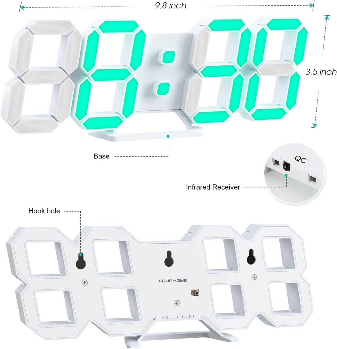 EDUP EH-LED1319 3D LED Wall Clock 9.5 Remote Control Digital Nightlight